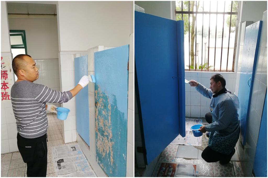 在本次服务活动中,支部全体党员同志克服了油漆刷新过程中产生的强烈刺鼻味和厕所的脏臭味,圆满完成了南教学楼所有厕所清洁美化任务,用自己的实际行动为身边师生扎实地办了一件好事。