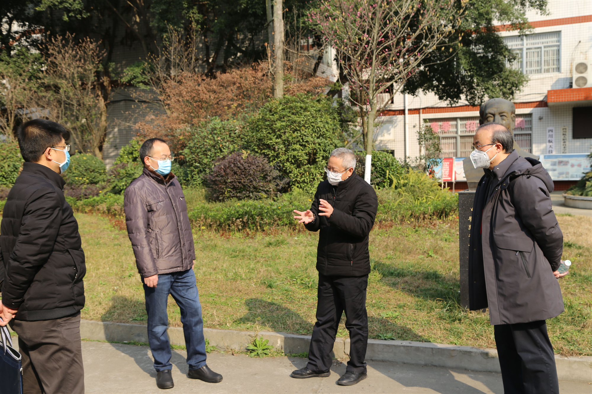 2月18日,四川航天工业集团副总经理易华昌一行四人到学院就疫情防控工作进行现场检查和督促,学院院长刘家騑,副院长唐笑非陪同检查。