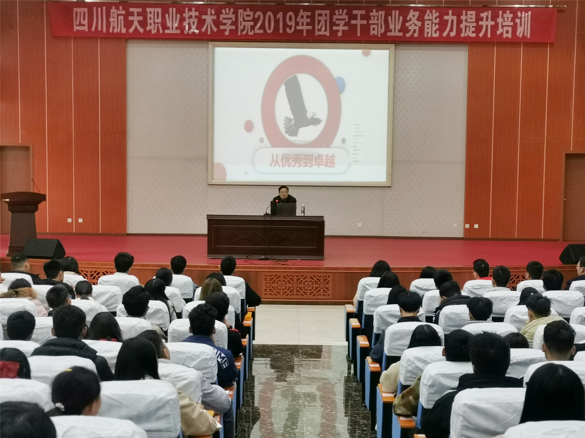 近日,由学院团委主办的 “四川航天职业技术学院2019年团学干部业务能力提升培训”在广汉校区学术报告厅正式开班。学院党委副书记秦勇为参培学员们做了“从优秀到卓越”的主题讲座,开启了此次培训班的第一课。