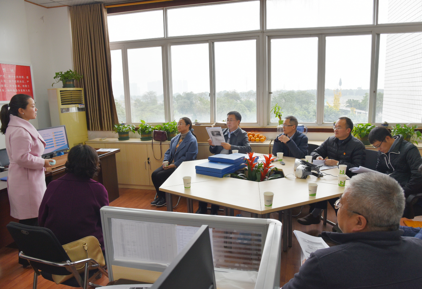 陈凡章书记认真聆听了三个基层党支部主题教育学习、实践及成效等方面的情况汇报,了解了党支部阵地建设,查看了相关资料。他表示三个党支部开展的主题教育规定动作不走样、自选动作有特色。党支部能发动教师党员带动学生党员和优秀学生干部加强学习,利用专业优势开展丰富多彩的实践活动,主题教育效果好,有成效。主题教育与扶贫工作相结合,与教学中心任务相结合,与平安校园建设相结合,与高校思想政治教育工作相结合,展现了学校主题教育工作特点。