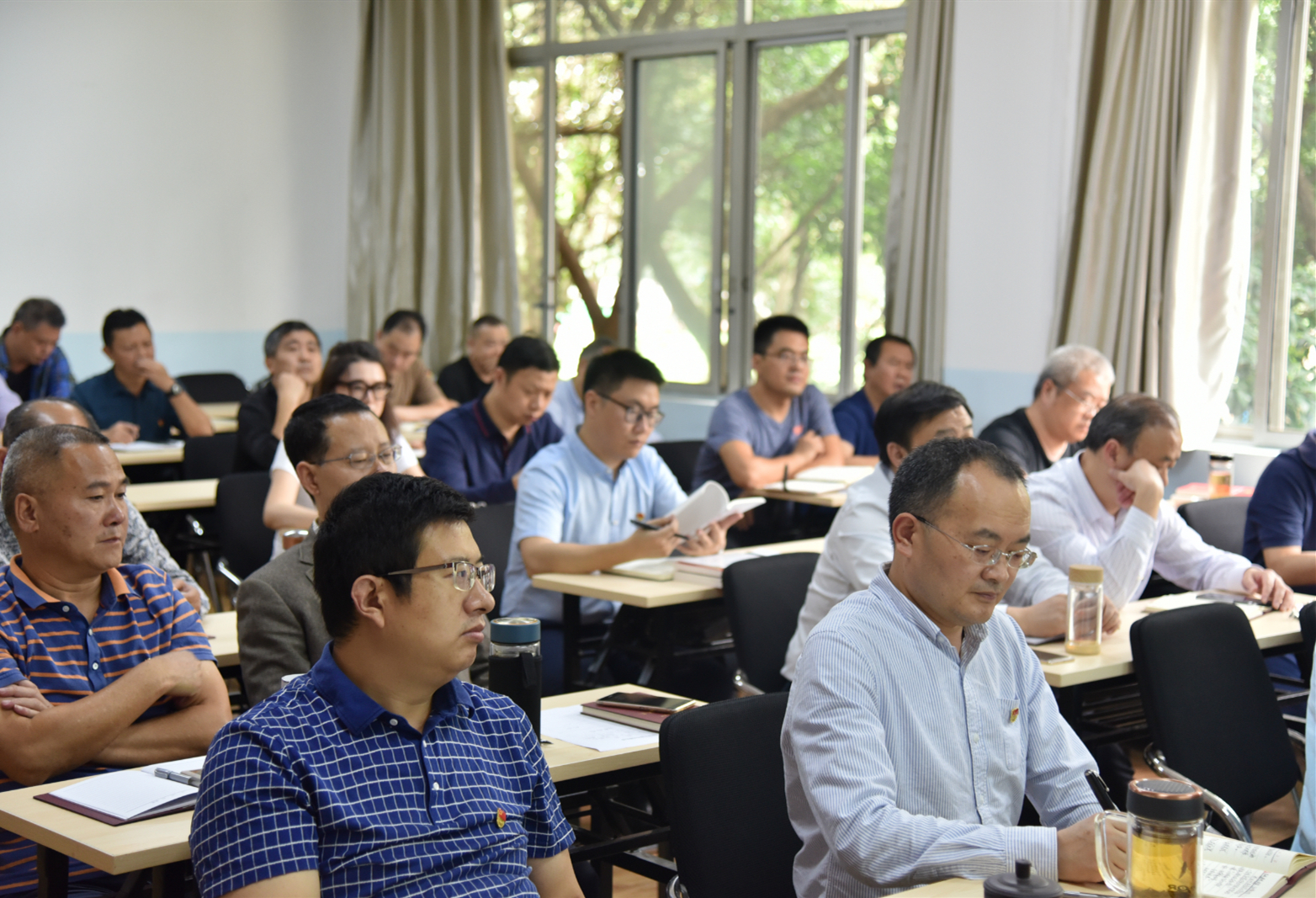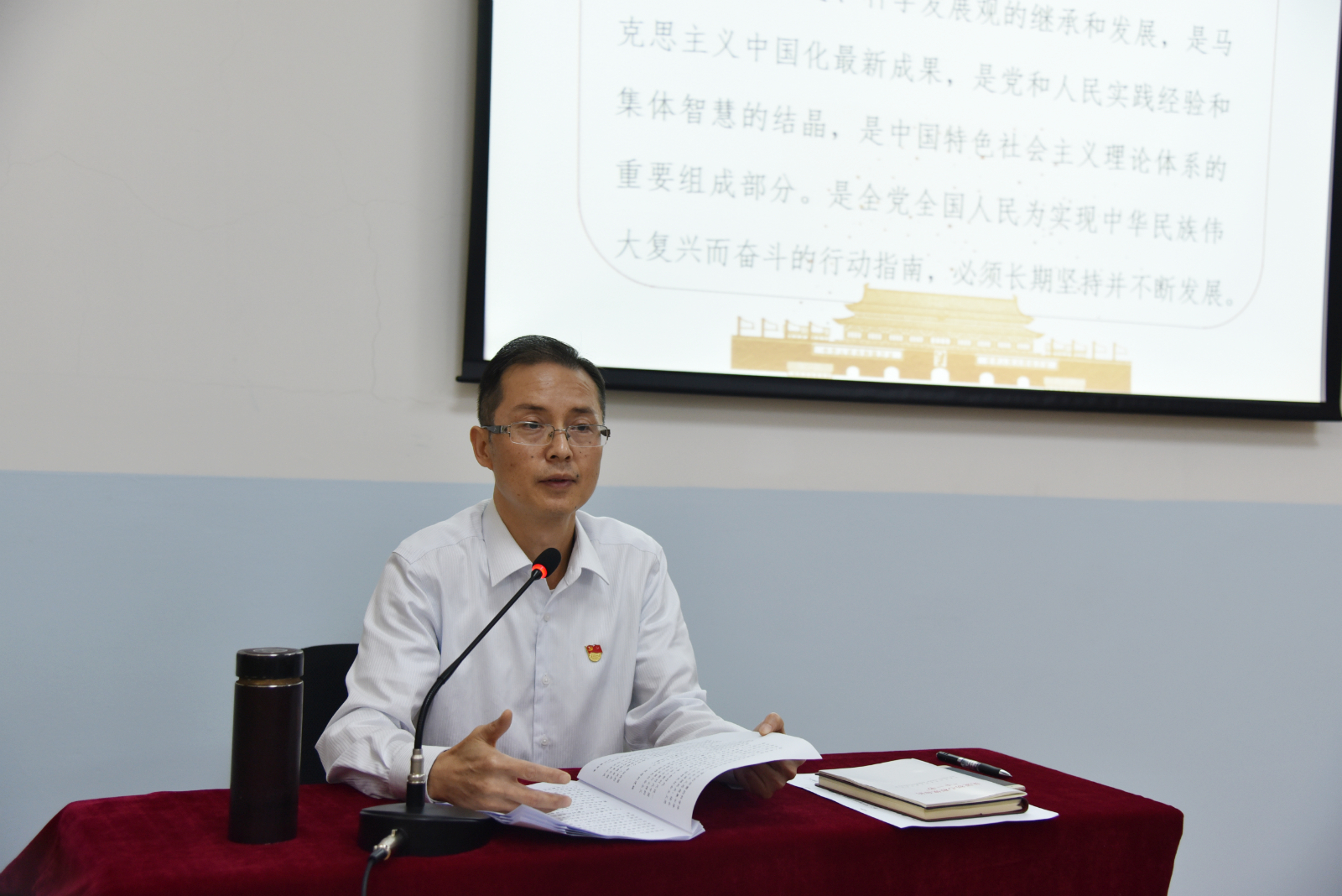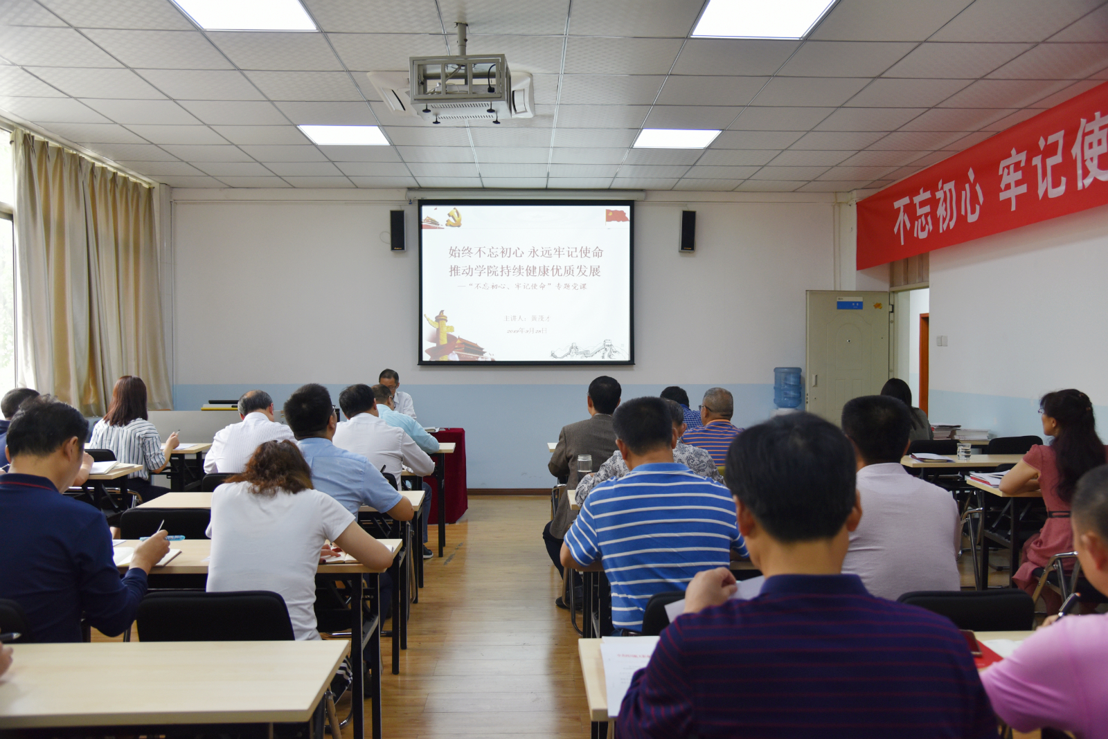 开讲啦!9月28日下午,在学院龙泉校区南楼205教室里,党委书记黄茂才为学院领导及四十多位党员中干带来了一堂别开生面的主题教育党课。