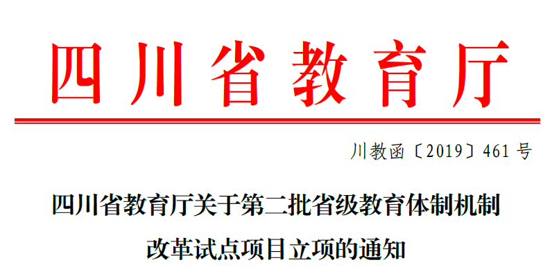 9月18日,四川省教育厅正式印发《四川省教育厅关于第二批省级教育体制机制改革试点项目立项的通知》(川教函[2019]461号),正式公布了第二批省级教育体制机制改革试点项目名单。经全省各高校申报推荐、教育厅组织专家评审等环节,学院申报的《产教融合推动高职学校高质量发展改革试点》项目成功入选,这是继2018年《“双师型”教师队伍管理机制改革试点》项目后第二次获得立项批准。