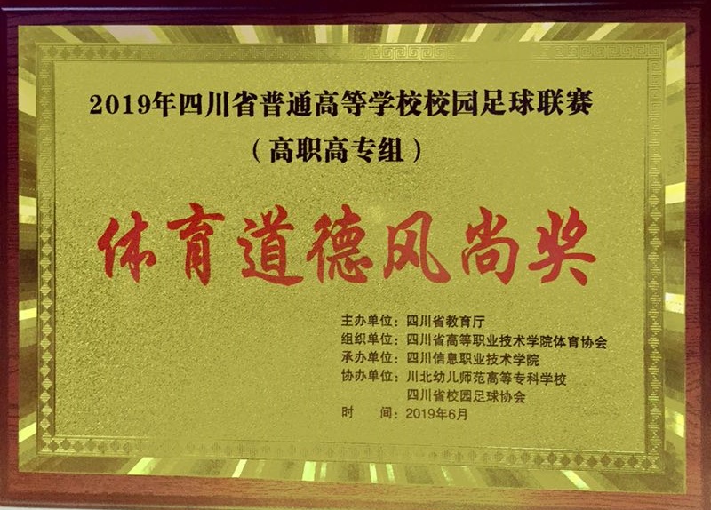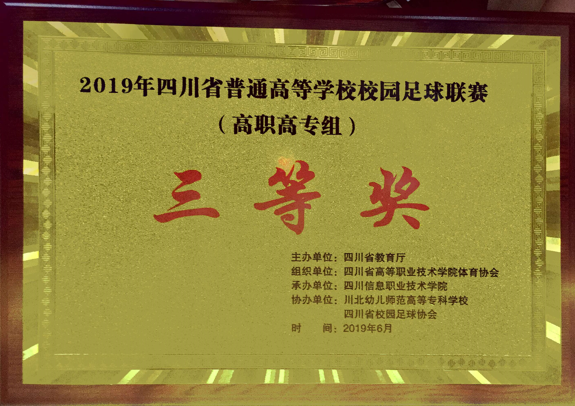 根据比赛规则,学院足球队荣获此次四川省普通高等学校校园足球联赛高职高专组三等奖。参赛队员们敢于拼搏、注重团结的精神也受得到赛事组委会的高度认可,组委会授予球队“体育道德风尚奖”,授予陈久港等两位老师“优秀教练员”荣誉称号,授予任文庆等5名同学“优秀运动员”荣誉称号。