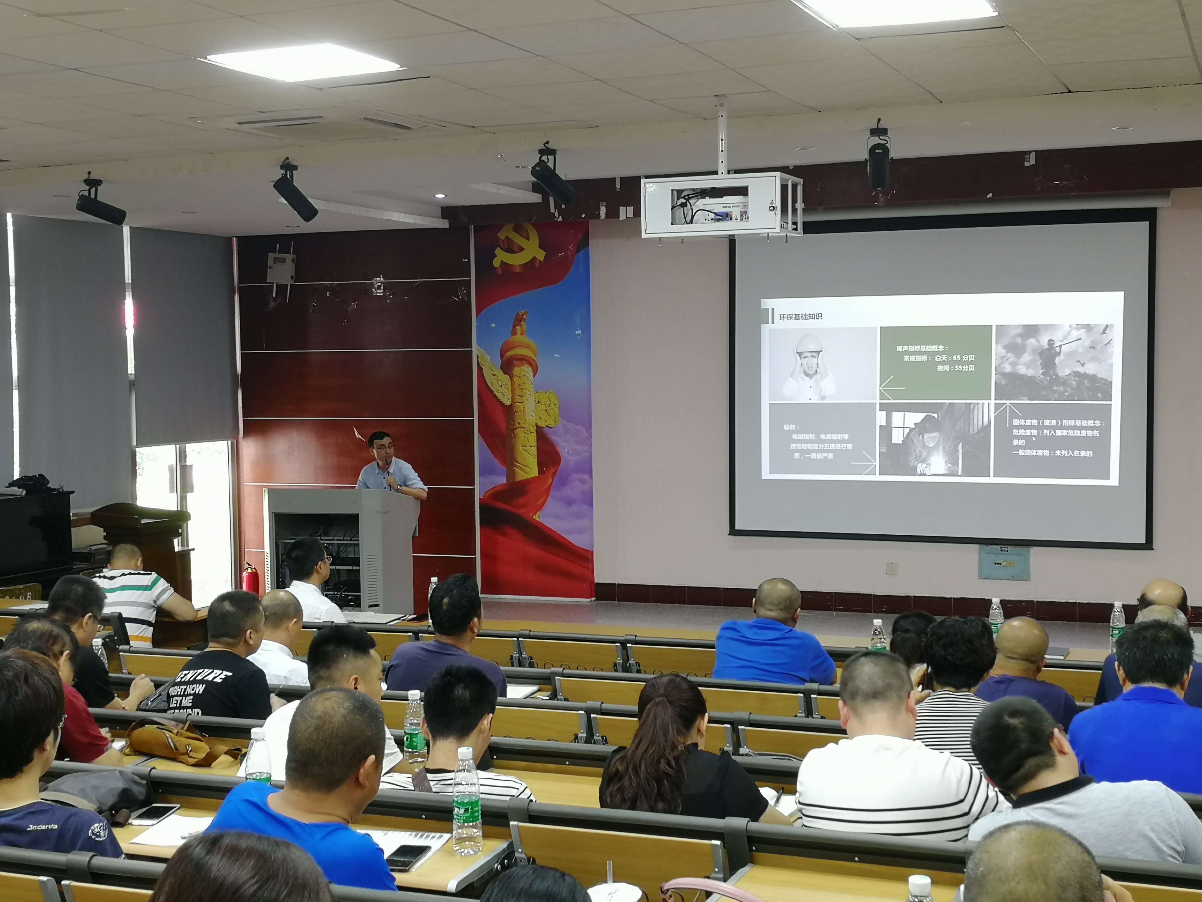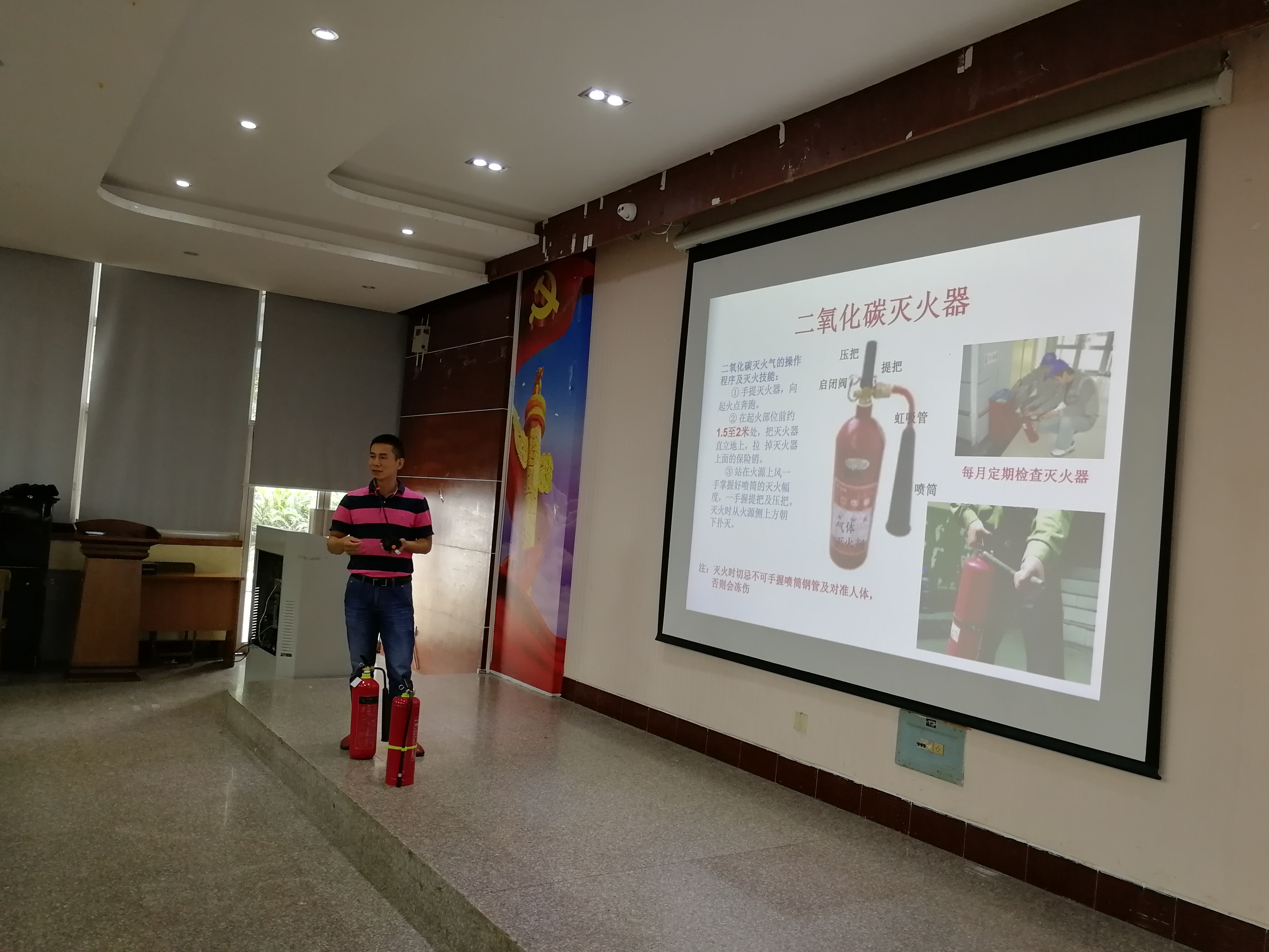 本次安全培训,由消防知识、环保知识和安全文化知识培训三部分组成。在消防安全知识培训中,学院保卫处付光奇老师首先从消防法律法规、企事业单位消防安全职责、单位员工消防管理要求和消防安全管理人员“四个能力”四个方面,给大家讲解了在日常消防安全管理中,单位各级人员应履行的相关职责和义务。针对夏季火灾事故发生频率高,处置不及时容易造成恶性灾害事故的特点,结合四川航天集团各单位的实际,从火灾的基本概念、火灾的种类、燃烧的三要素、日常火灾的预防、初期火灾的处置和灭火的基本方法等方面,给大家进行了详细讲解。为让大家对火灾事故及其引发的危害有一个更加直观清晰的认识,付老师还结合近期发生在成都周边的几起典型火灾案例,给大家进行了剖析讲解,并告诫大家夏季火灾多发,防范更显重要。