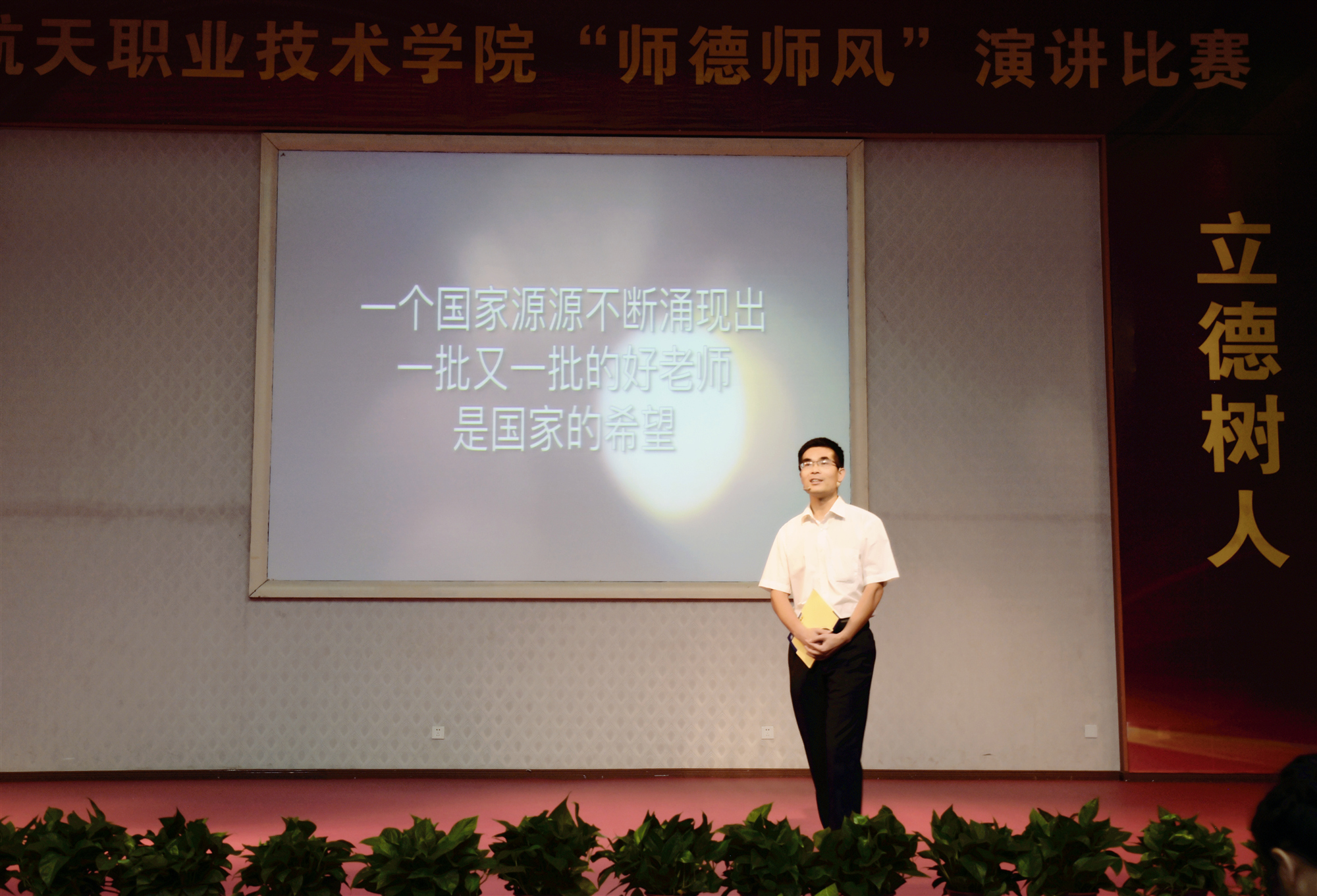 在近两个小时,16个“师德师风”演讲节目中,老师们满怀深情地讲述了自己和身边的故事,充分展现了我校教师爱岗敬业、无私奉献、开拓创新的良好风范和对航天这片沃土的深深热爱。