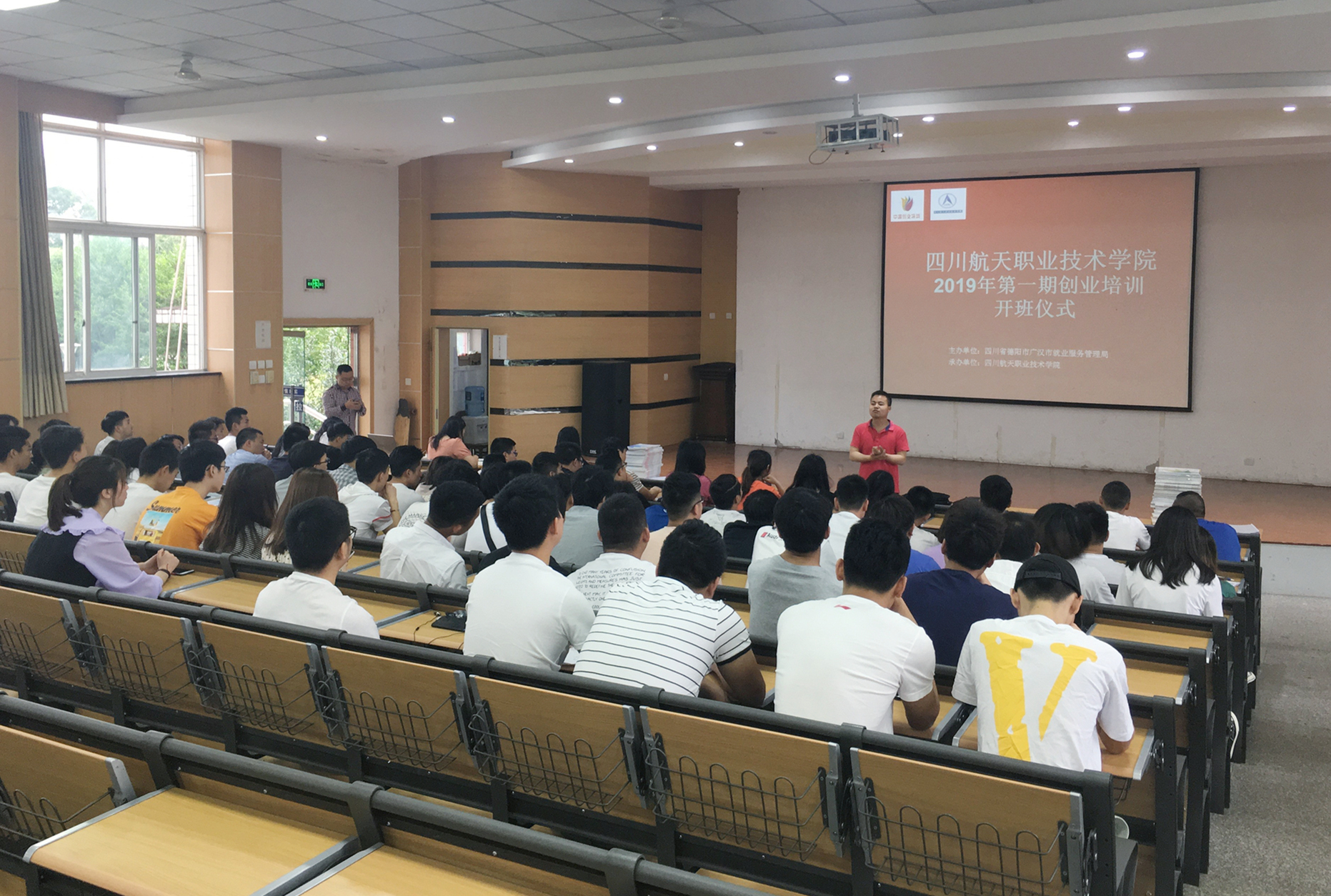 2019年5月27日,四川航天职业技术学院2019年第一期SYB创业培训开班仪式在学院顺利举行,广汉市就业服务管理局培训股文毅老师为本期开班仪式致辞。文老师向培训学员介绍了创业培训的政府补贴及相关申请政策,并对地方政府培训监管制度及培训要求等给学员做了相应说明。参加本期SYB创业培训的90名在校大学生均来自电子信息工程系,他们将在接下来的10天培训安排中接受学院SYB讲师团队的专业培训。“大众创新万众创业”,希望创业的激情与火苗能在学院的土壤里传播四方。