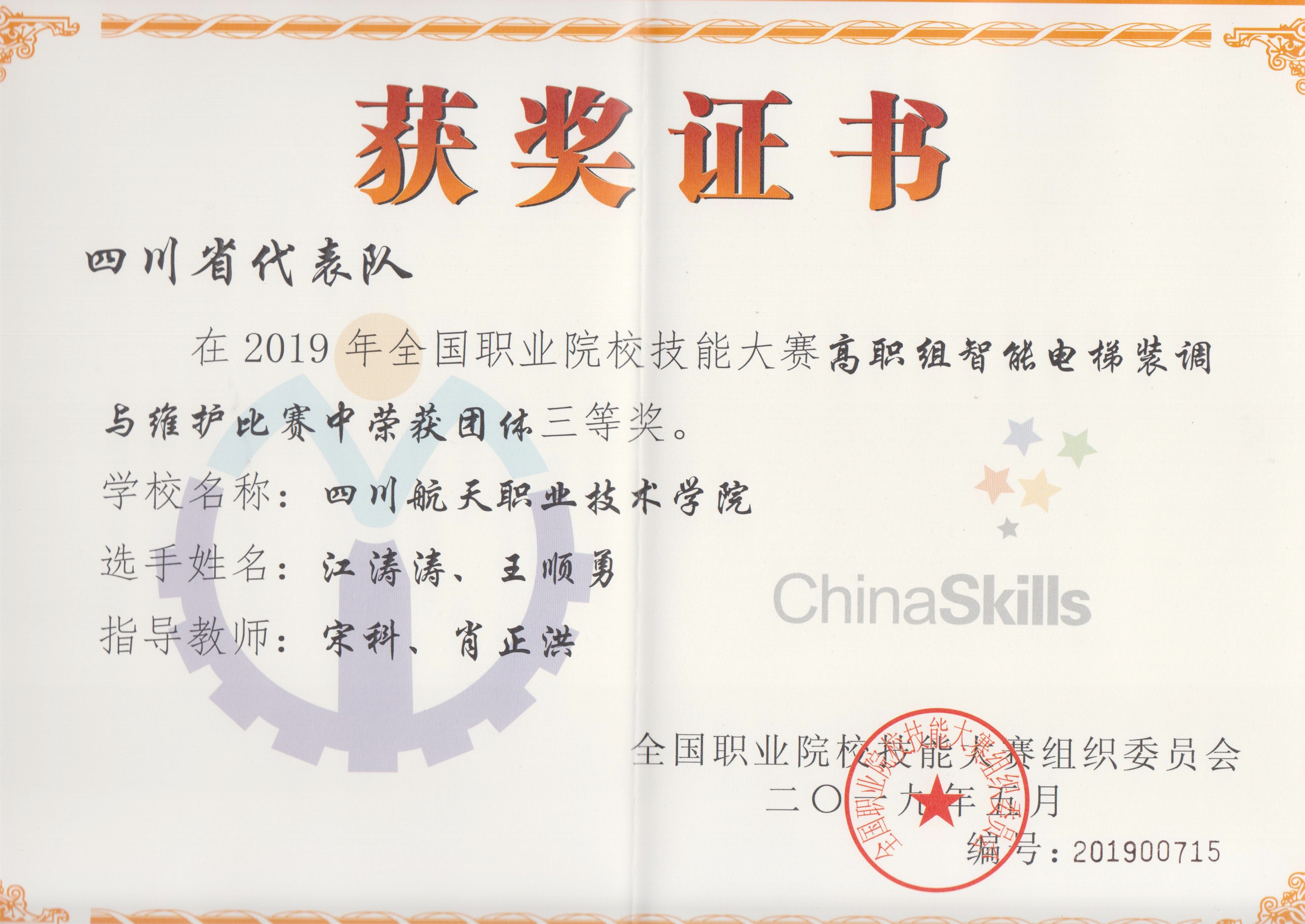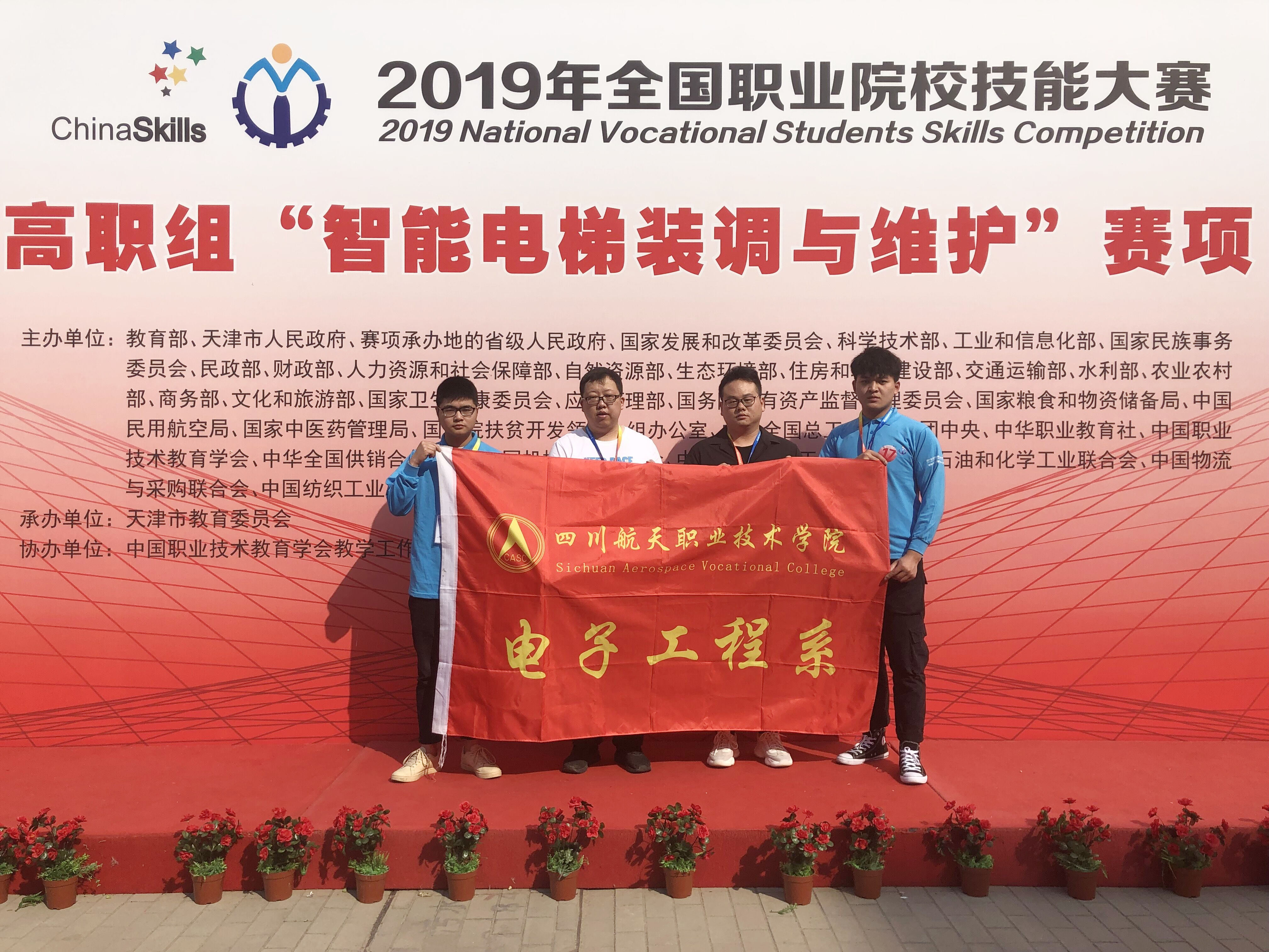 2019年全国职业院校技能大赛高职组智能电梯装调与维护赛项于5月6日至9日在天津轻工职业技术学院举行,学院作为四川省代表队参加此次比赛,这次比赛总共有来自全国各地高职院校90支参赛队伍180名选手参赛。