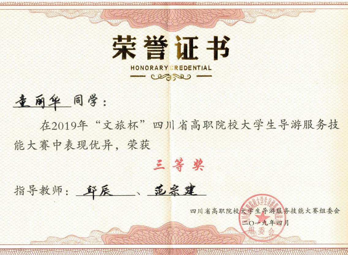 我校旅游管理专业2018级三名小将勇敢应战,经过两天的激烈角逐,由范宗建、刘美娣、邱辰三位老师的指导的李泓濂、童丽华、向爽三名同学获二等奖1项、三等奖2项。比赛成绩肯定了我们的努力,更鞭策着我们踏实前进。