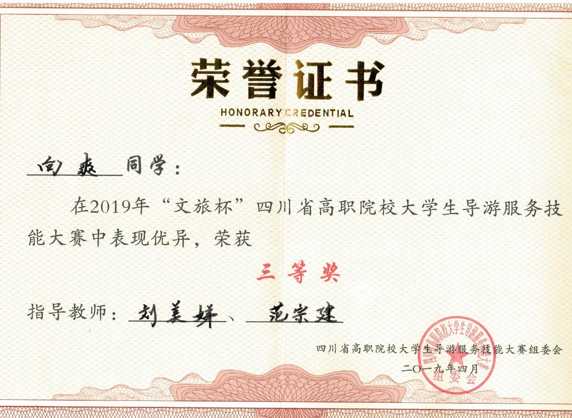 由四川省教育厅主办的2019年四川省高职院校导游服务技能大赛在成都举行,本届大赛为个人赛,113名选手均为全省开设旅游类专业的38所高职院校初赛选拔胜出的佼佼者,可谓是高手对决。大赛按照国家文旅融合最新战略、国赛最新要求和导游行业最新趋势,设计了理论测试、英语情景对话、抽选团型文化元素讲解、自选景点讲解和带团才艺运用五个环节,着重检验选手面对具体团型的灵活创作能力和各种带团情景下的应变能力。