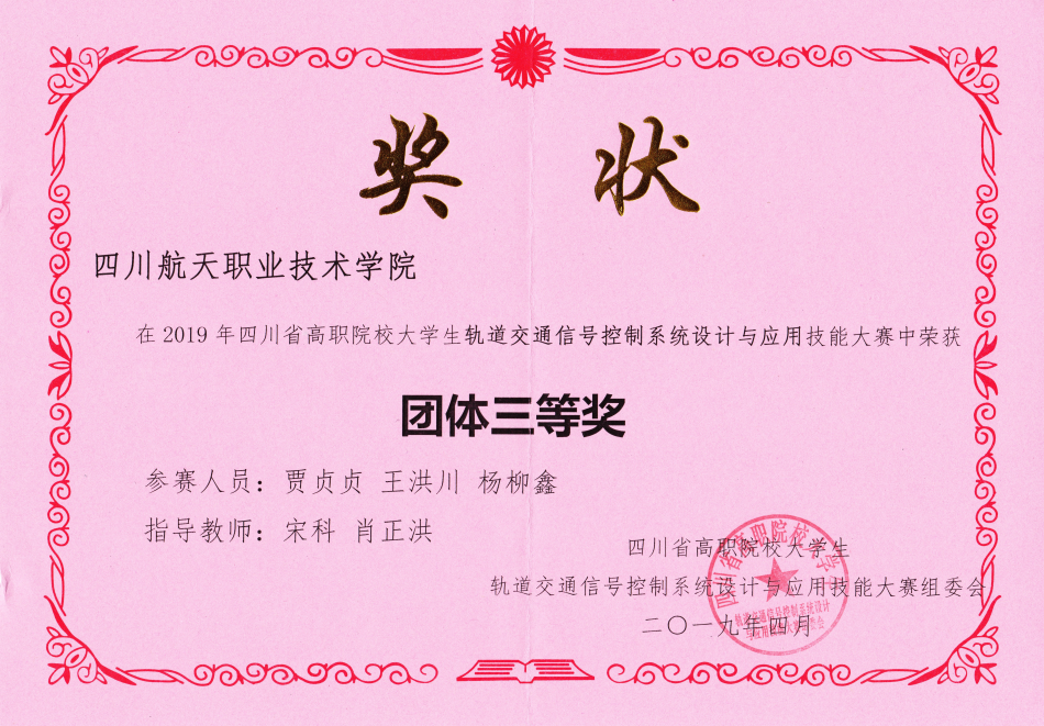 4月10日,2019年四川省职业院校技能大赛(高职组)“轨道交通信号控制系统设计与应用”大赛在四川邮电职业技术学院举行,来自全省高职院校的12支代表队36名选手参加了比赛,经过两轮的角逐,学院电子工程系获得二等奖1个,三等奖1个,同时获得国赛的参赛资格,学院代表队首次参赛就获得了较好的成绩。