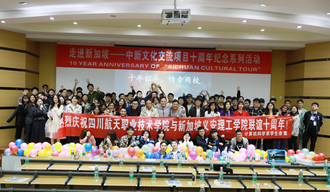 2019年4月2日,学院计算机科学系与新加坡义安理工学院在广汉校区举行了十年联谊晚会。十年间,新加坡学生给我校带来了不一样的校园文化,增强了彼此的凝聚力;十年间,两校的学生更加熟悉彼此,增进了两校同学之间的友谊。