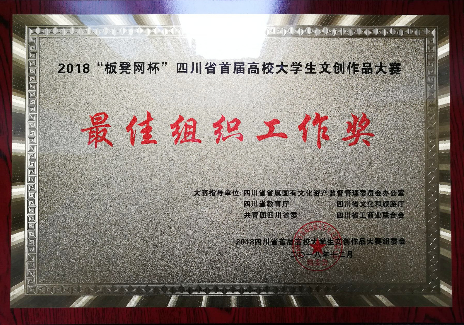 2019年3月20日上午,由四川省省属国有文化资产监督管理委员会办公室、四川省教育厅、四川省文化厅、共青团四川省委、四川省工商业联合会共同指导,四川省创新创业促进会、四川金和版权产业机构主办的2018“板凳网杯”四川省首届高校大学生文创作品大赛颁奖大会在四川师范大学狮子山校区学术报告厅举行。本次大赛是为聚集高校大学生的智慧和力量,发挥大学生创新创业的热情,提供一个比拼创意、展示梦想的舞台。