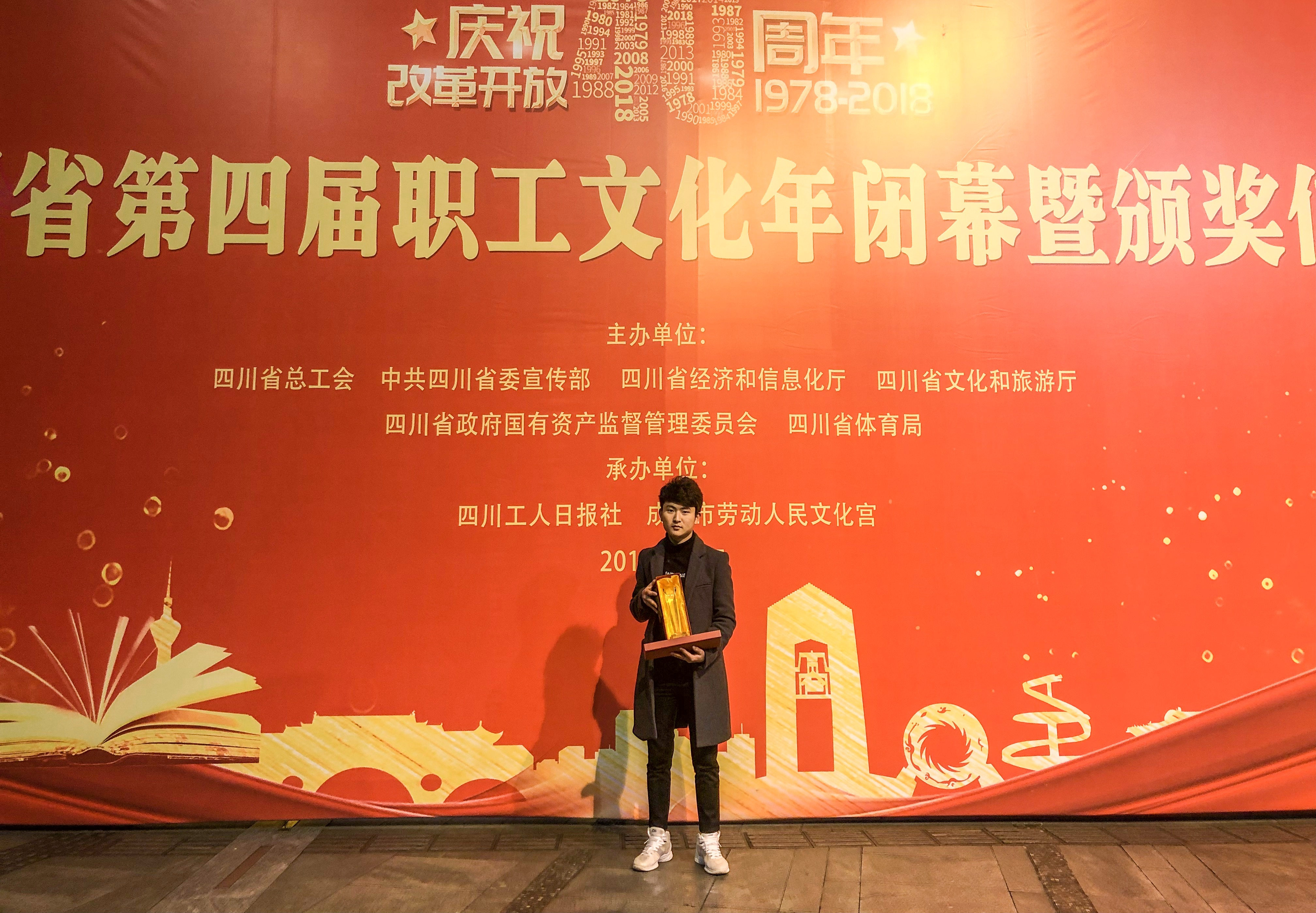12月24日晚,由四川省总工会联合四川省宣传部、四川省经济和信息化厅、四川省文化和旅游厅、四川省国资委、四川省体育局主办的“庆祝改革开放40周年·四川省第四届职工文化年闭幕暨颁奖仪式”在成都市劳动人民文化宫梦想剧场举行。仪式上,为四川省第五届职工摄影大赛获奖职工颁奖。学院管理工程系2015级工程造价专业毕业生陈俊林以摄影作品《匠心之作》获得四川省第五届职工摄影大赛相机组铜奖。