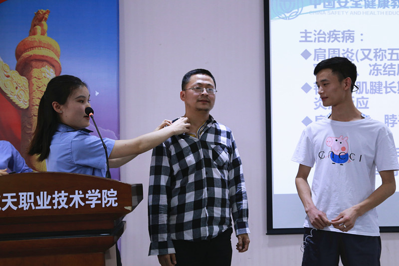 讲座中杨老师主要围绕应急救护、慢性病、职业病三个方面展开讲解和演示。杨老师向师生们详细讲解了处置心脏病突发事故的正确急救知识,对救护过程中的动作要领进行了指导;对常见的三大职业病即肩周炎、颈椎病、腰椎间盘突出疾病的预防和治疗方法进行了演示。杨兰平老师用精练的语言、标准的姿势、认真的态度博得了师生们的阵阵掌声,通过现场演示使本来严肃、枯燥的讲座内容,却在活泼轻松的氛围中向师生们进行了科普,给现场听讲的师生们留下了深刻的印象。参加讲座的职工纷纷表示听了讲座受益非浅,寓教于乐中学到了知识。