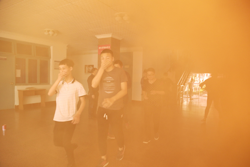 下午4时,迎着声声警笛,伴着阵阵浓烟,“5.12”应急疏散演练正式拉开帷幕,在楼层疏散引导员的正确引导下,各疏散班学生按预定路线快速疏散,经过1分29秒,所有疏散师生全部安全疏散至指定位置,演练取得圆满成功。演练结束后,学院保卫处杨端副处长代表演练指挥部对本次疏散演练给予了高度评价,并指出了本次疏散演练中存在的不足之处,同时要求大家以本次应急演练为契机,大力加强安全知识的学习,努力提升自己应急自救能力。