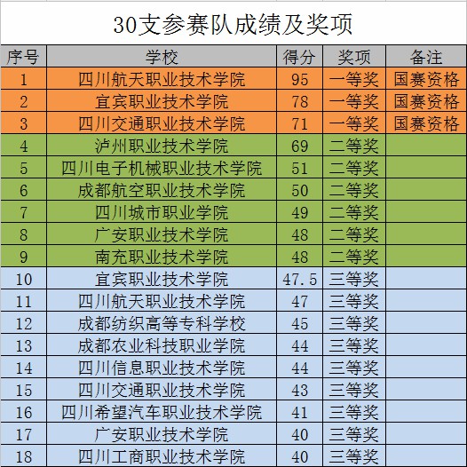 我院电子工程系参赛队经过2个小时激烈奋战,圆满完成了大赛任务,并且取得了“四川省高职院校工业机器人技能大赛”一等奖佳绩,同时取得了代表四川省参加国赛的资格。指导教师赵威、乔鸿海被评为优秀指导教师。