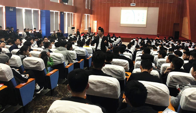 宣讲会上,吉利控股集团人力资源部西南区经理徐祥国就企业的发展历程、技术实力、科研设施、国际合作、企业文化、员工发展和发展远景等进行了简要介绍。并通过宣讲短片和PPT对新员工入职培训、工作技能培训以及入职后的发展路径等进行详细解说。学生观看后对企业历史、现状、发展及岗位要求等有了清楚的认识。最后在你问我答的环节中,公司徐经理就学生所关心的岗位薪资、住宿条件、福利保险、转正待遇等问题一一作了阐述。精彩的宣讲赢得了在场同学们的积极响应,当天下午的面试现场同学们积极踊跃、十分火热。