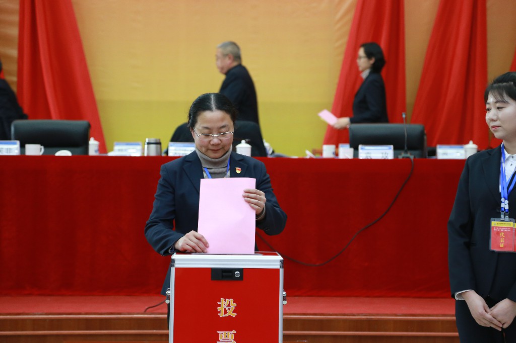 在下午的会议上,大会表决通过了《四川航天职业技术学院第三次工会会员代表大会选举办法(草案)》,经过全体代表现场无记名投票选举产生了学院工会第三届委员会委员9名和经费审查委员会委员5名。