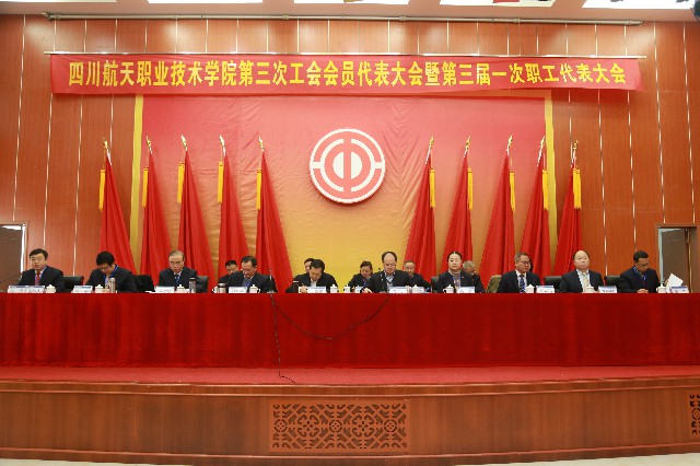 12月28日上午,四川航天职业技术学院广汉校区学术报告厅里布置得喜庆而隆重,四川航天职业技术学院第三次工会会员代表大会暨第三届一次职工代表大会在这里召开。四川航天工业集团党委副书记、纪委书记、工会主席罗青春,四川航天工业集团党群工作部部长、人力资源部部长周万专程到会指导。参加本次大会的有90名正式代表,8名列席代表,大会执行主席秦勇主持会议。