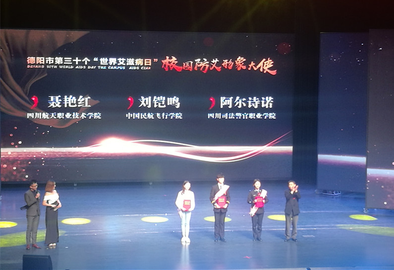 艾滋病是一个全社会都在关注的话题,现在已经被列为全世界疾病榜首,它的传播方式涉及到了很多人文伦理的问题,因此近几年的关注度甚至比癌症还高。“世界艾滋病日”的设立也是为了宣传正能量,让患者有一个良好的生活环境,让社会大众对艾滋病患者多一点关爱。文艺展演中我院同学们自编自演的舞台剧“艾滋病大王”将观众带进了不一样的世界;颁奖典礼上来自电子系的聂艳红同学获得了德阳市“校园防艾形象大使”,学院选送的10部微电影每部均获得1000元的入围奖金;学院在德阳市第30个“世界艾滋病日”活动中获得了“优秀组织奖”。