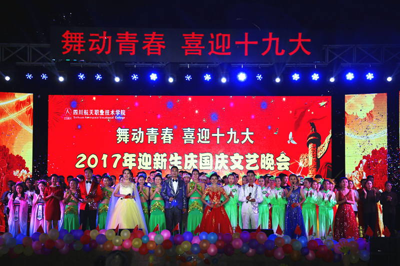 9月27日,四川航天职业技术学院“舞动青春,喜迎十九大”2017级迎新生庆国庆文艺晚会在广汉校区隆重举行。学院领导、各系部领导及辅导员、学生代表与全体2017级新生欢聚一堂,一起享受这场由师生共同打造的视觉盛宴,同时也欢迎新同学加入航天学院这个大家庭。