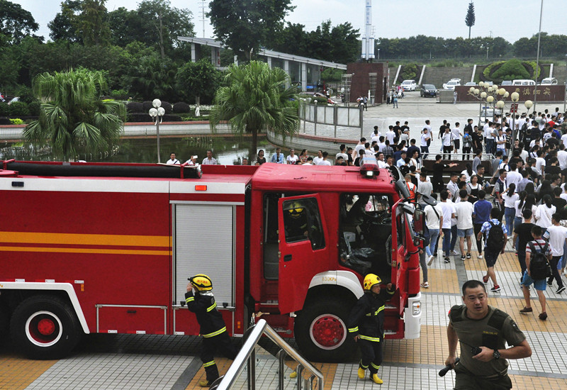为加强学院安全管理工作,提高广大师生在突发公共事件中的快速疏散和应急自救逃生能力, 9月1日,在广汉市消防中队、广汉新坪镇派出的大力协助下,四川航天职业技术学院2017级新生应急疏散演练在广汉校区明志楼顺利举行,4000余名师生参加了演练,学院院长刘家騑、副院长刘宏道等领导亲临现场指导应急疏散演练工作。