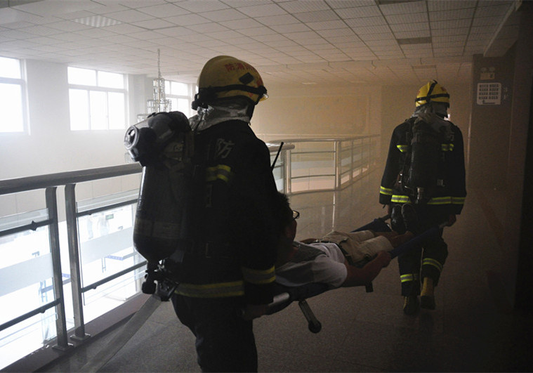 下午4点10分,随着学院刘家騑院长一声令下,明志楼疏散现场顿时警笛阵阵、浓烟滚滚,各系部以班级为单位,蒙鼻捂口、弯腰前行,沿着预案规定路线快速逃离“火场”,下午4时14分30秒,随着最后一名“受伤”学生被消防官兵顺利救出,所有师生以最快速度撤离到安全区域,历时4分30秒的消防疏散演练圆满结束。