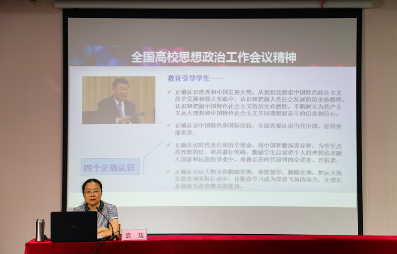 在培训会的开班仪式上,刘家騑院长高度肯定了辅导员工作的重要性,要求辅导员要做一名“政治强、业务精、纪律严、作风正”专家型辅导员。接着袁玫书记和大家一起解读《习近平在全国高校思想政治工作会议上的讲话》及《王东明在全省思想政治工作会议上的讲话》,并就热点问题中“高校舆情管理”进行了精彩讲座。