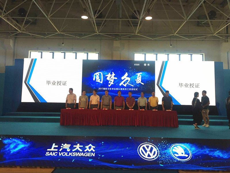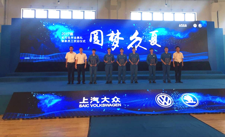 7月27日,上汽大众汽车有限公司宁波分公司举行了“2017届实习生毕业典礼暨新员工欢迎仪式”。四川航天职业技术学院副院长陈宇、就业处处长古中林、教务处处长王德佩一行5人、上汽大众汽车有限公司宁波分公司厂长张荃、党委书记黄解元、行政管理高级经理张宏成及与上汽大众开展校企合作的全国14所高职院校代表参加了本次活动。