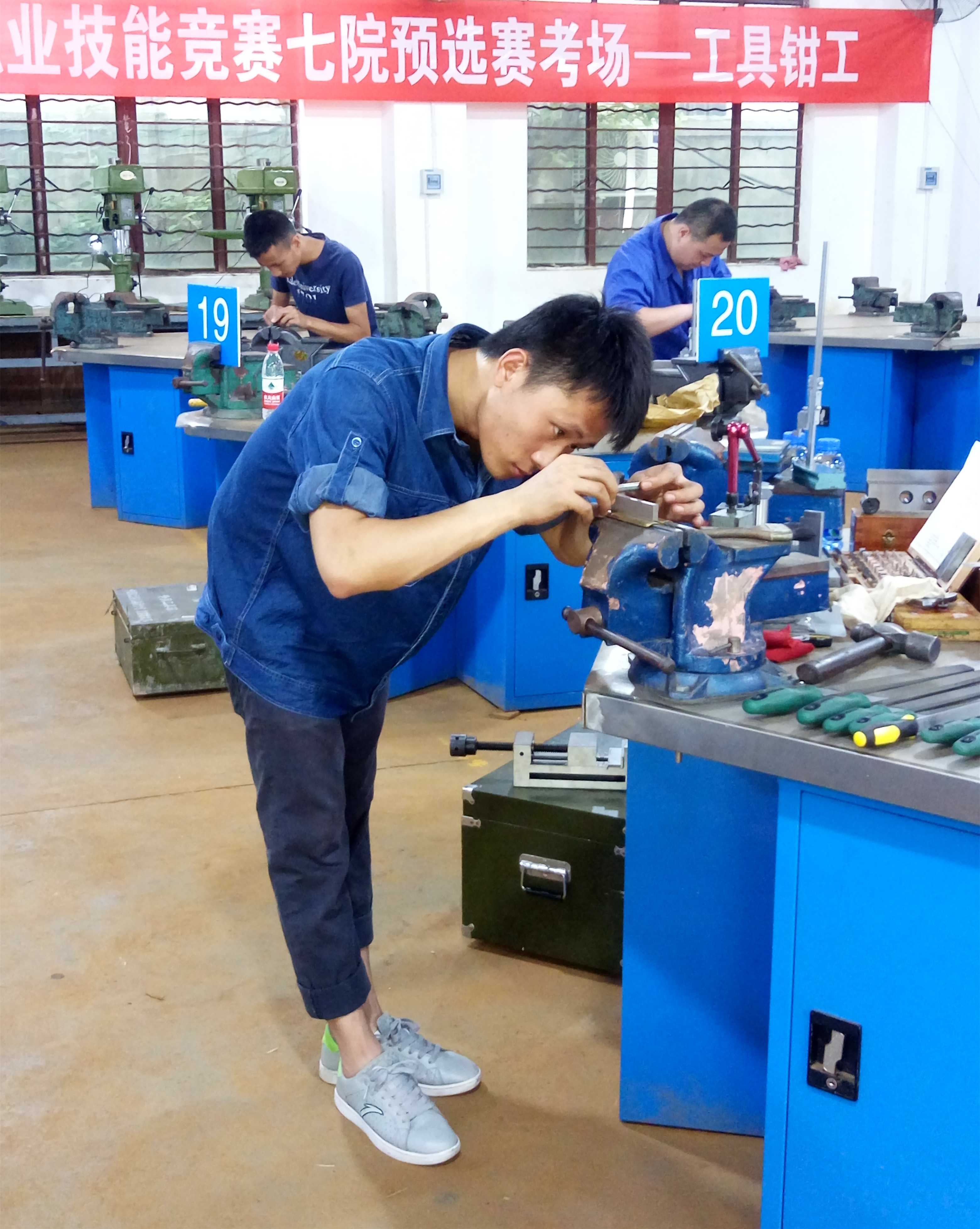 来自七院各单位预选中脱颖而出的22名技能精英汇集在学院龙泉校区钳工实训中心,展开激烈角逐,竞争新一批的“四川航天技术能手”荣誉称号和进入集团公司参加决赛的“门票”。