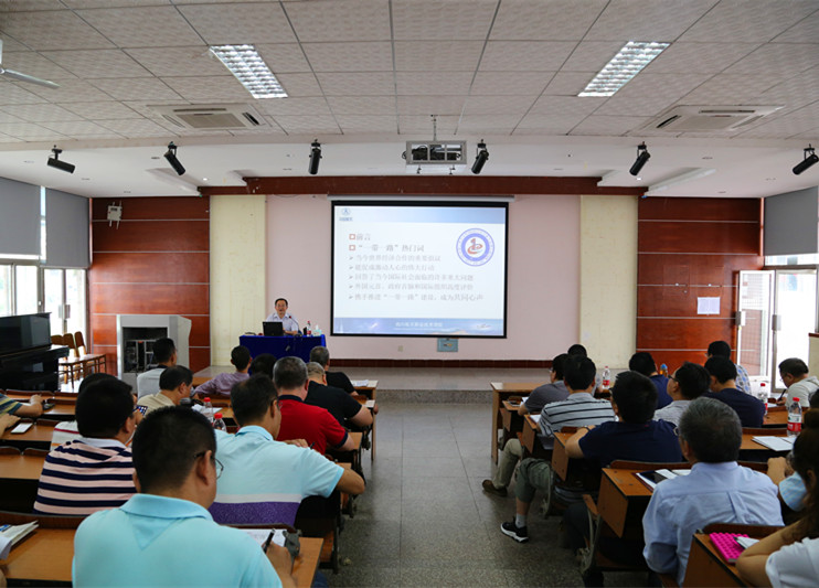 6月27日,学院党委组织全体中干及部门助理人员集中学习,在系列学习安排中,刘家騑院长为全体人员讲授“学习习近平总书记讲话精神,落实‘一带一路’教育行动”专题讲座。