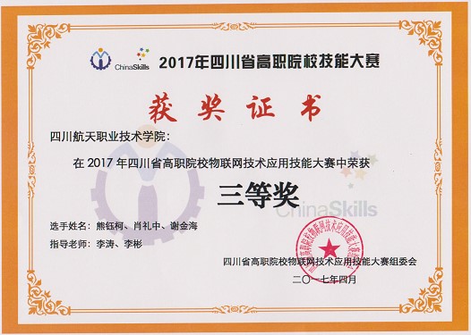 4月8日晚8点,四川省高职院校大学生物联网技术应用大赛在四川信息职业技术学院圆满落下帷幕。本次大赛由四川省教育厅主办,四川信息职业技术学院承办。来自四川航天职业技术学院、四川邮电职业技术学院、四川职业技术学院、四川信息职业技术学院等8所院校的16支队伍参加了比赛,我院获得团体三等奖。