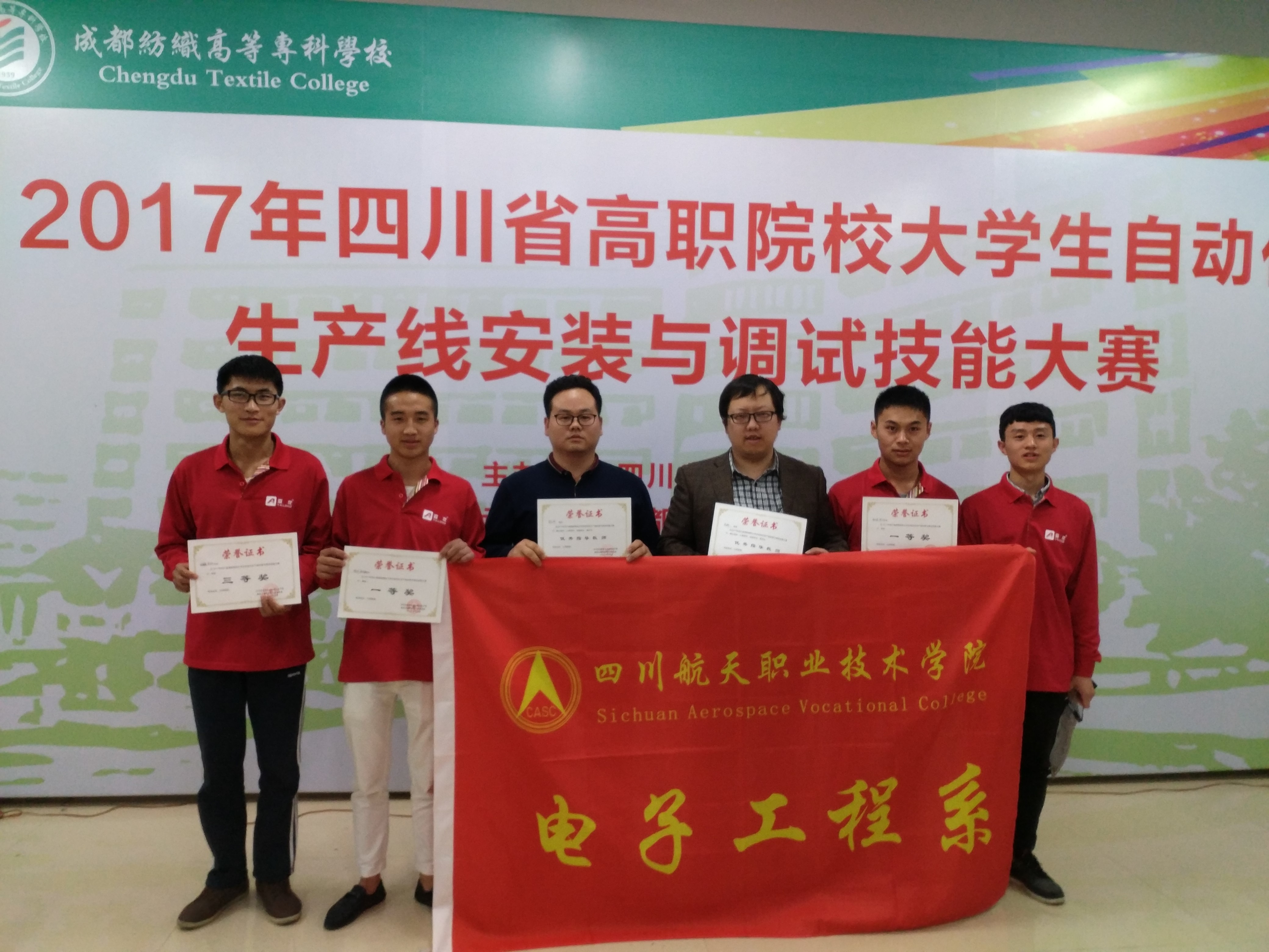 4月7日至9日学院电子工程系代表队参加了在成都纺织高等专科学校承办的四川省高职院校自动化生产线安装与调试技能大赛。这次比赛总共有来自四川各地的12所高职院校、19支参赛队伍、38名选手参赛。