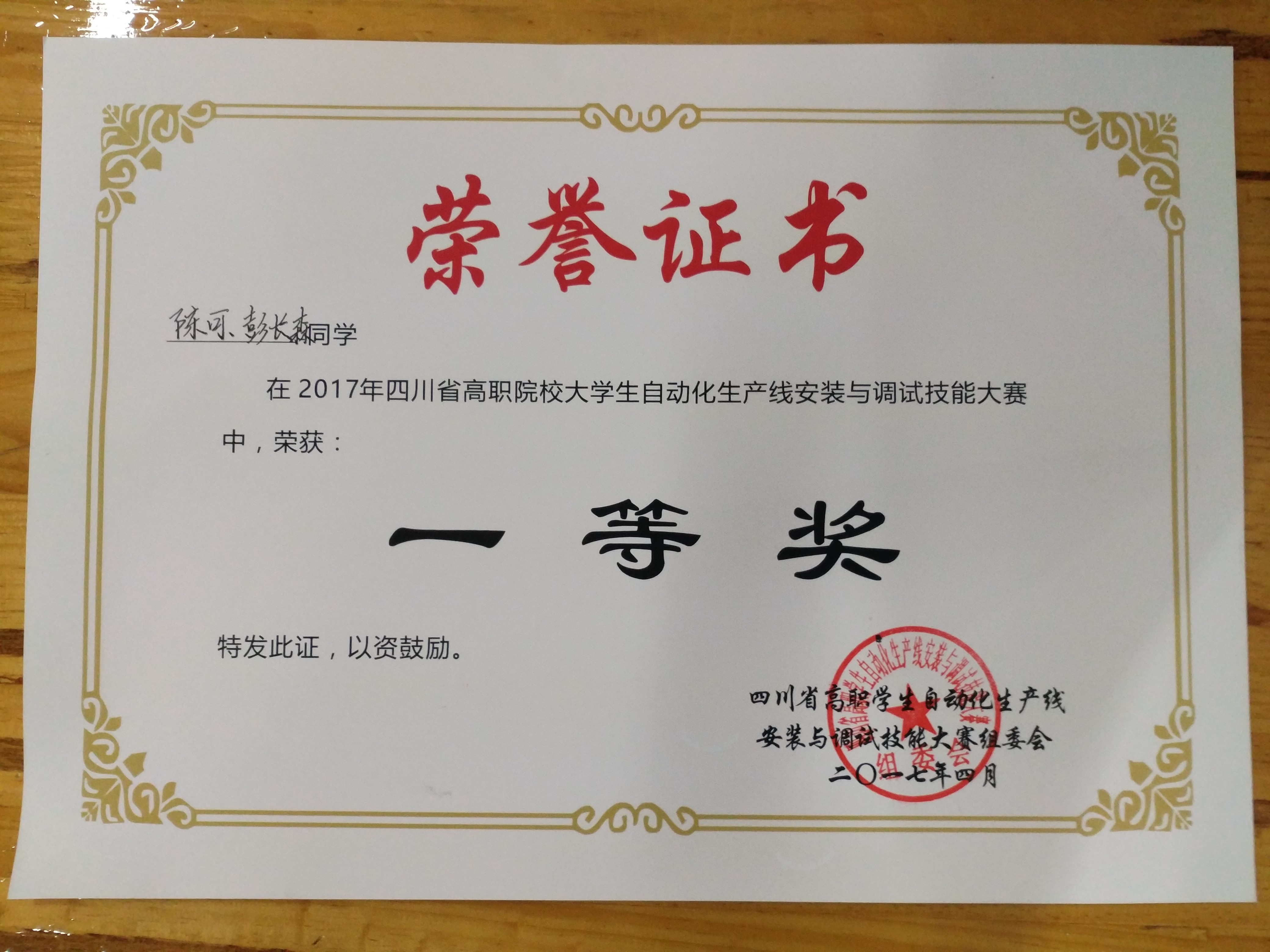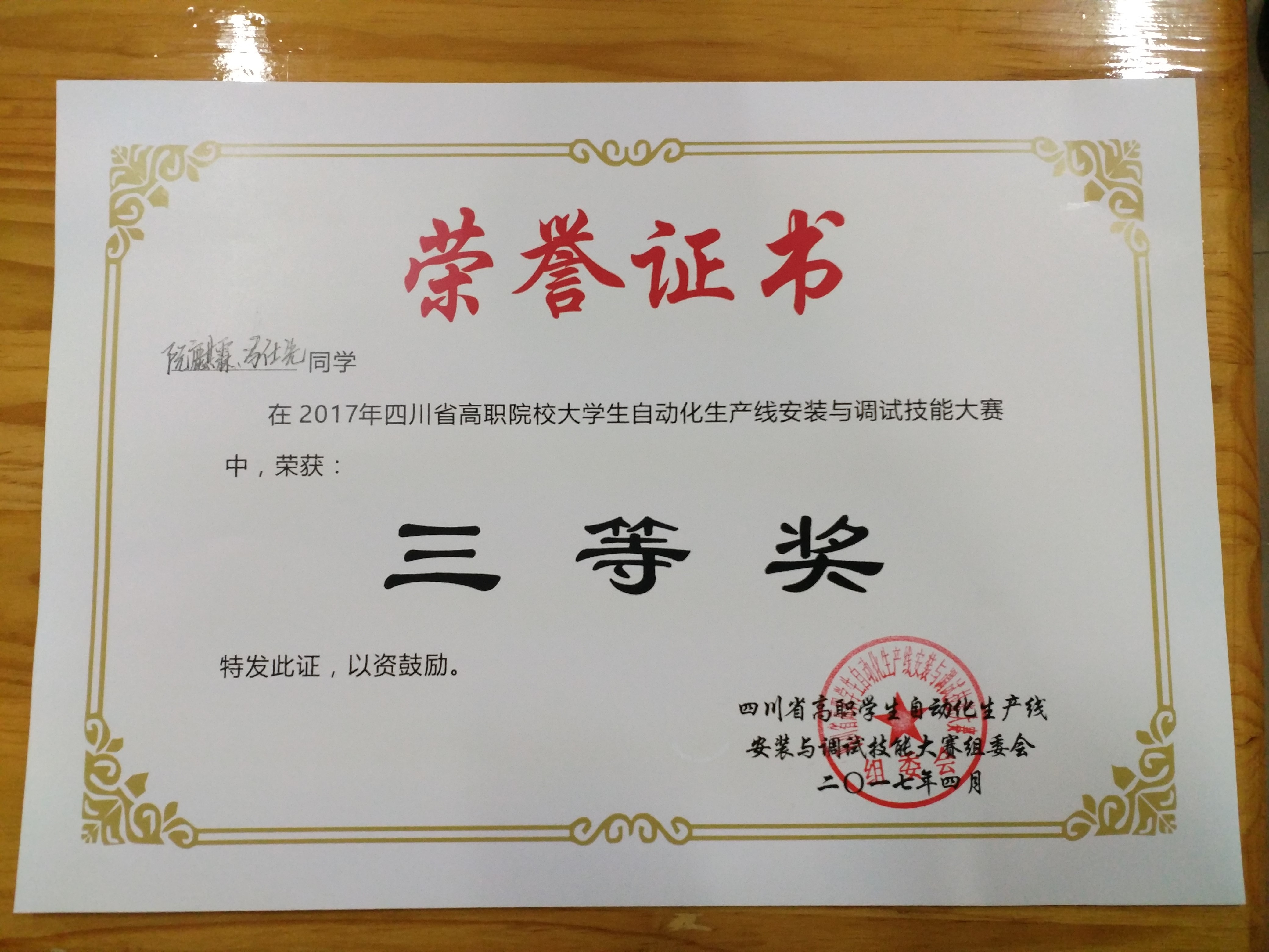 我院电子工程系参赛队员经过4个小时激烈奋战,圆满完成了大赛任务,并且取得了“四川省高职院校自动化生产线安装与调试技能大赛”一等奖和三等奖的佳绩,指导教师宋科、肖正洪被评为优秀指导教师。