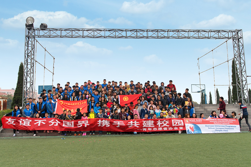 新加坡留学生、爱心家教部的小朋友们以及青年志愿者同学们齐聚足球运动场。首先开展趣味游戏活动,活动中新加坡留学生们和小朋友们相互搭档进行比赛,同心协力,游戏场面有趣生动。游戏结束后,新加坡留学生们赠给小朋友们丰富的阅读书籍,并在每本书上留下寄语希望小朋友们健康快乐成长。最后,大家集体留影纪念此次活动。