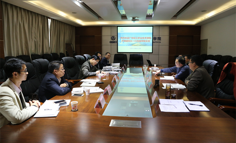 会上,刘家騑院长向卢坤建院长一行表示热烈欢迎,并且详细地讲述了我院的办学目标、办学定位、办学环境、办学方法以及具体的学院管理模式。刘院长表示,广东轻工职业技术学院地处沿海发达地区,学术氛围浓厚、资金充裕、师资力量雄厚、办学实力强大,是我院学习和以后发展的榜样。卢坤建院长表达了对刘家騑院长的热情接待的感谢,也对我院在职业技能培养、校企合作办学、双校区高效管理运作、产教融合、国际合作交流办学等方面的成绩提出了高度肯定和赞赏。