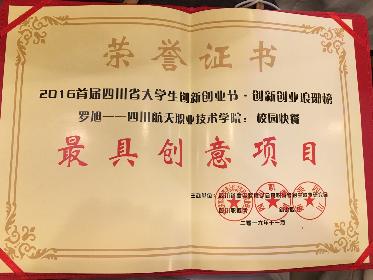 11月4日,在成都世纪城国际会议中心举行的2016四川职业教育创新创业论坛上,我院计算机科学系2016届毕业生罗旭同学的创业项目——校园比克利西式快餐店,获得2016首届大学生创新创业节·创新创业琅琊榜活动《最具创意项目》。