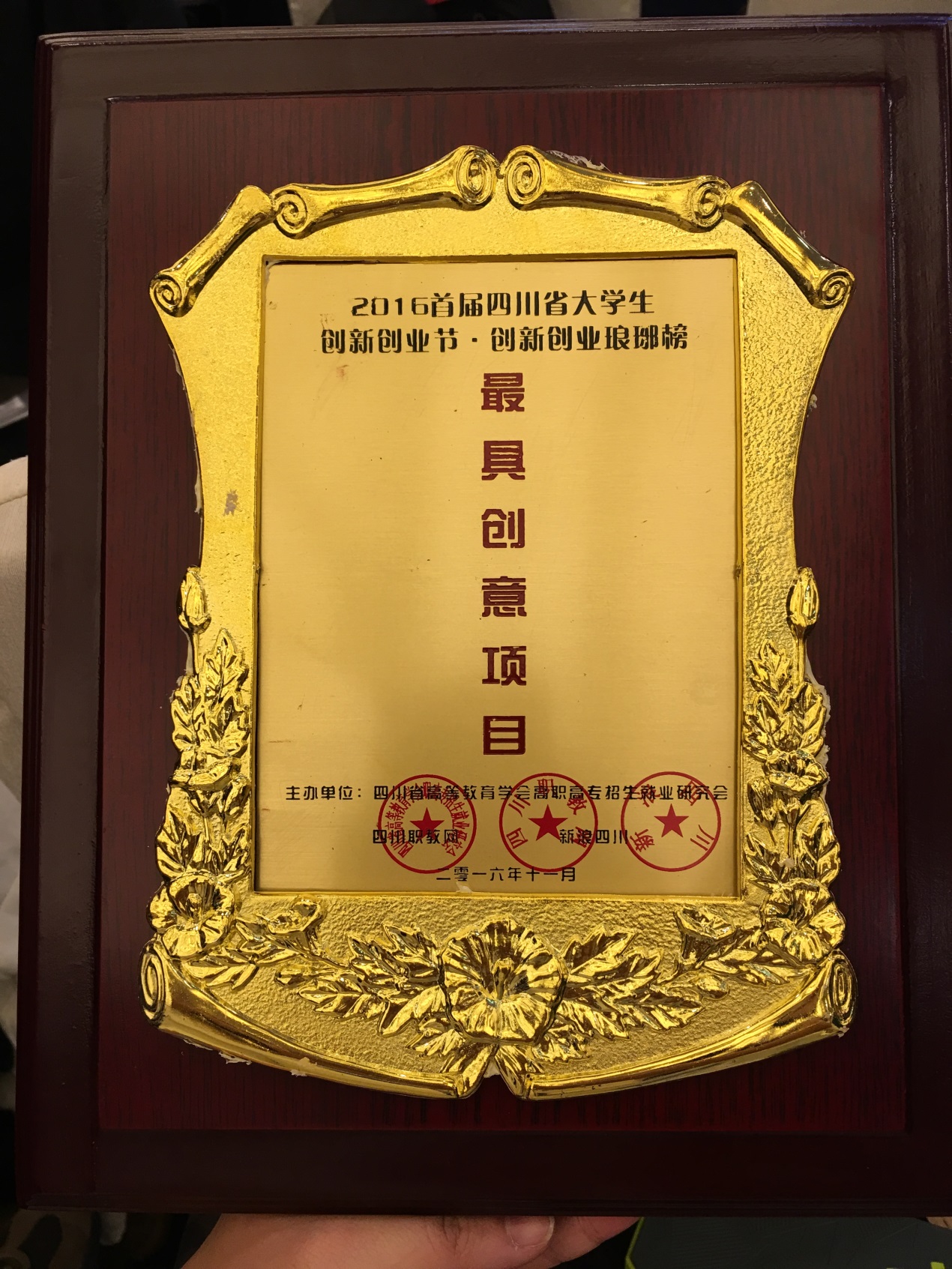 此次论坛作为四川省首届大学生创新创业节的一项重要活动,在论坛上为在2016年四川省首届大学生创新创业节“创新创业琅琊榜·点赞最牛创新创业之星”活动中由大众和专家评选出的“最具投资价值项目”“最具创意项目”以及“最具发展潜力项目”进行了颁奖。四川省首届大学生创新创业节活动开展以来受到了广泛关注,有来自全省三十余所高职院校的近百个创新创业项目参加了评选活动。