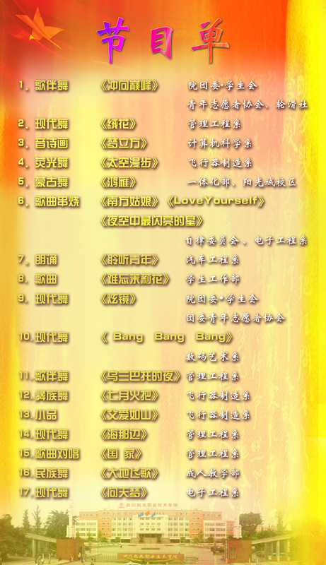 四川航天职业技术学院“齐聚航院 载梦启航”2016年迎新生庆国庆文艺晚会,现在开始!