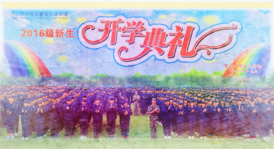 现在我们看到的是由女子800人组成的图形表演团队。女子方队依次变化组合成形状CASC 1965、51、HOPE2016(CASC是中国航天的英文标识,1965是四川航天职业技术学院成立的时间; 51指的是学校建校51周年; HOPE2016,指的是2016充满希望,在新的学期里,奋发向上。)