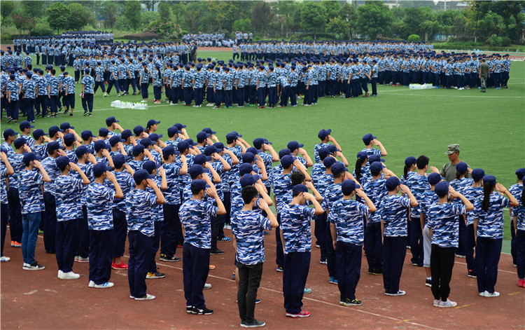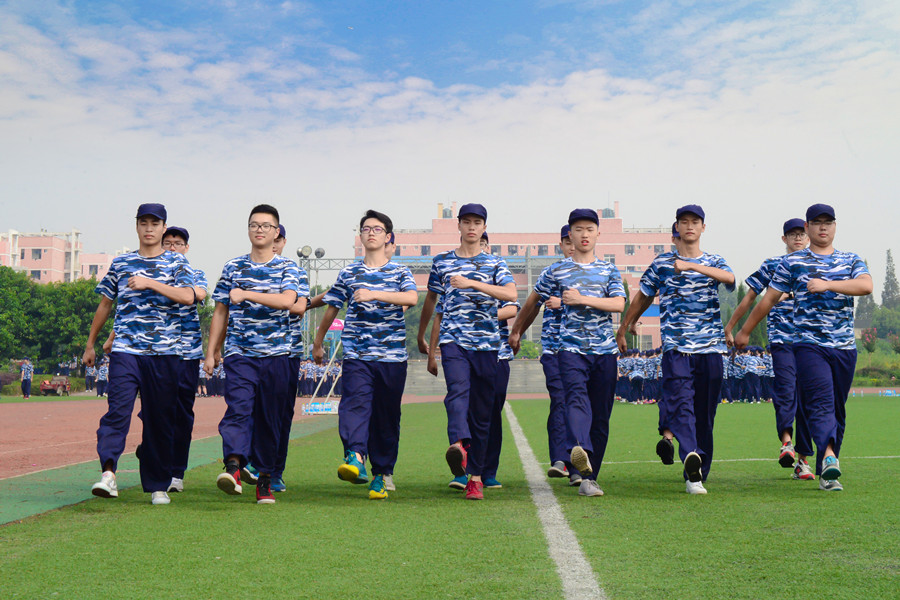 2016级新生们穿上“航天蓝”开启了军训生活。