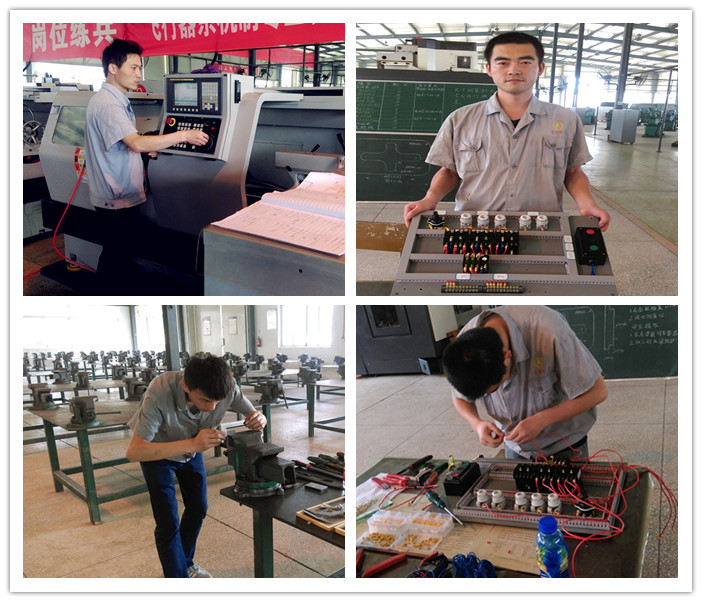 本次竞赛分为专业理论授课和技能操作两部分进行。50周岁以下的17名实训教师参加了授课竞赛;35岁以下的9名青年教师参加了操作技能竞赛。本次竞赛从教师的课堂组织、授课内容、语言表达、授课艺术、教案准备等方面全面考察了实训教师对本专业理论知识的掌握,对教学方法和现代教学手段的运用、对教育教学要素的把握以及安全文明生产重要性的认识。操作竞赛采用技师竞赛水准和要求,从工艺编程、加工零件、工件质量、安全文明生产等严格考核、规范操作。