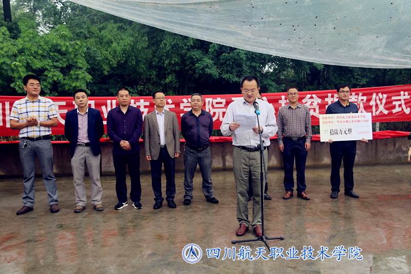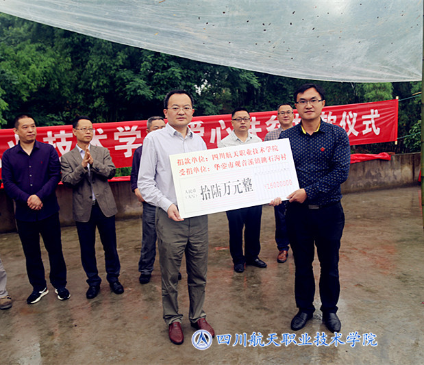 2016年5月18日至19日,四川航天职业技术学院院长刘家騑、副院长夏华、刘宏道、纪委副书记秦勇等一行4人来到华蓥市,进行精准扶贫工作交流,并深入对口帮扶的观音溪镇跳石沟村,将学院师生捐赠的16万元爱心扶贫款和办公电脑、打印机送到了跳石沟村村民委员会。在村委会举行的捐赠仪式上,刘家騑院长深情致辞:“学院在快速发展的同时,没有忘记肩负的社会责任。希望通过我们的共同努力使跳石沟村更亮、更美, 衷心祝愿跳石沟村早日致富奔小康。”
