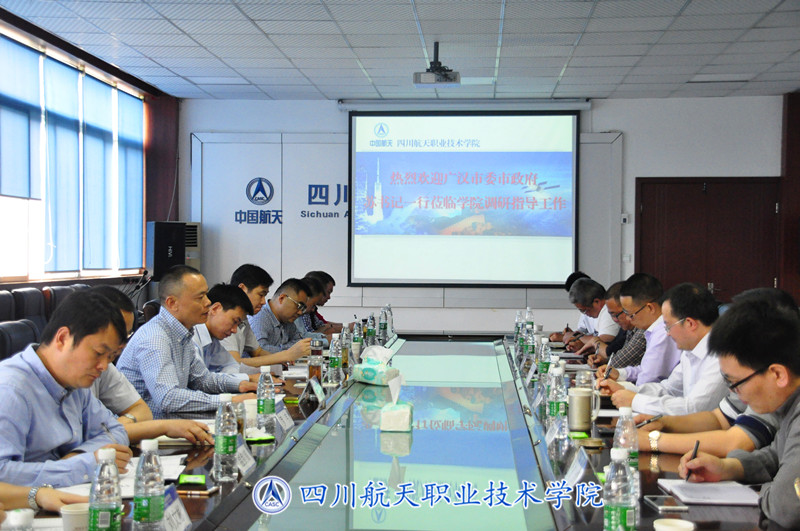 座谈会上,刘家騑院长向苏刚等市委领导介绍了学院的基本情况、办学特色、办学实力、十三五规划及发展目标。苏刚书记首先对学院的办学成果表示肯定和赞赏,对我院为广汉市地方经济的发展所做的贡献表示感谢,并表示将加大对学院职业教育发展的支持力度。苏刚书记要求广汉市委、市政府相关部门积极配合学院,协调政府资源加大投入,解决学院发展面临的问题与困难,助力学院做大做强,共同努力帮助学院早日建成具有航天特色的应用型本科院校。苏刚书记还希望校地双方紧密合作,加强联系,学院在发展壮大的同时,积极服务广汉市地方经济发展。