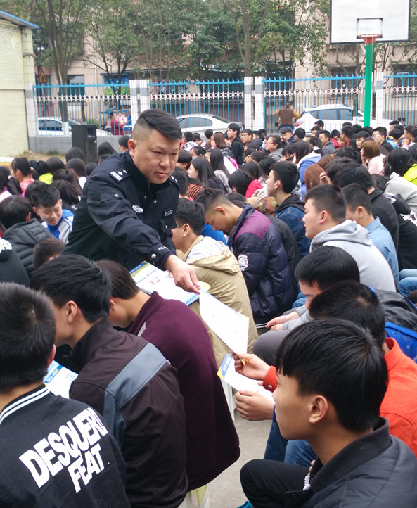 你知道人在吸食毒品后可能对人体造成哪些伤害吗?社会上传言新型毒品“K粉”只是一种兴奋剂,对人体无害,少吃几次不会上瘾的这种说法正确吗?带着这些疑问,3月16日受学院保卫处邀请,龙泉驿区北干道派出所韩鑫鑫警官一行来到我院为师生们进行了一场以“珍爱生命 远离毒品”为主题的禁毒知识宣传教育活动,学院近千名师生接受了禁毒知识专项宣传教育培训。