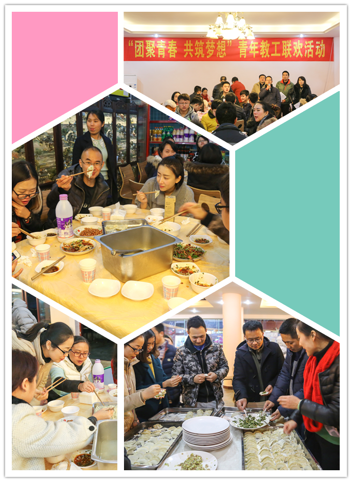 本次联欢活动共分为两个阶段,第一阶段做游戏,第二阶段包饺子。在第一阶段,大家团结协作,同心同力,使游戏活动热闹非凡,快乐无比。在第二阶段,大家相互配合,心手一致,共同包出了美味可口的同心饺。在冬至---“亚岁”这个特殊日子里,全院青年教职工在一起玩游戏,吃着自己亲手包的同心饺,共同度过了一个青春火热、快乐欢欣的日子。