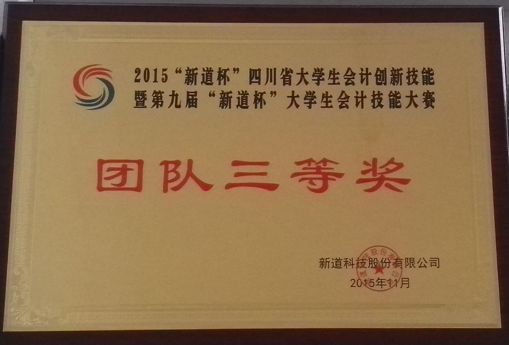 2015年11月28日,2015年“新道杯”四川省大学生会计创新技能暨第九届新道杯大学生会计技能大赛,在成都工业职业技术学院落下帷幕。我院由张雯、王晶两位老师指导的4名资产评估与管理专业学生组成的参赛队荣获“团队三等奖”。