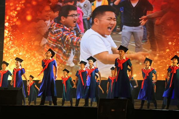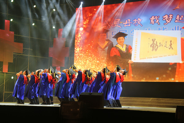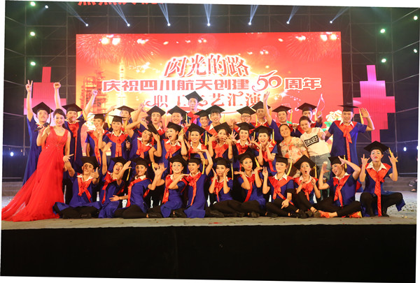 8月31日,四川航天技术研究院上演了一出精彩的职工文艺汇演,学院师生共同排练的节目《穿上毕业礼服》也在晚会中精彩上演。 为了庆祝四川航天创建50周年,为了在文艺汇演中展示学院的特色,三十多名师生利用暑假的时间日夜排练,最终在晚会中一鸣惊人,精彩亮相,赢得了领导和在场观众的一致好评。节目展现了即将离开学校的学生穿上毕业礼服,对母校和同学依依惜别的情感,同时对未来有着无限的向往和希望。