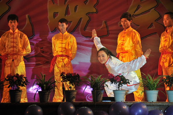 11月5日,学院“理想激昂青春志,奋斗成就中国梦”2013级迎新文艺晚会在广汉校区隆重举行。学院领导、各系部领导及辅导员、学生代表与全体2013级新生欢聚一堂,一起享受这场由学生打造的视觉盛宴,同时也欢迎新同学加入航天学院这个大家庭。 精彩的节目在观众的欢呼声中接踵登场。热情如火的彝族舞蹈,精彩绝伦的武术表演,激情澎湃的配乐诗朗诵无不展现出航院学子的多才多艺和青春活力。悠扬的乐曲、轻快的节奏、妙曼的舞姿、动人的旋律,共同点亮航院师生的非凡之夜。充满神秘色彩的魔术《奇迹之夜》把整台晚会推向了高潮,夜晚的校园变成了欢乐无比的海洋。 晚会还倡导学生自主参与,从策划方案到节目编排,从购买道具到化妆布台,无论是学生干部还是大一新生,纷纷参与其中、乐在其中、享在其中、学在其中。晚会在所有人的感动与不舍中落幕,然而新同学才刚展开他们精彩的大学生活,很多新同学表示,他们会好好把握时间,让自己的大学生活更加绚丽多彩,也将和全院师生共同努力,奋力实现青春梦想,用“青春梦”托举“中国梦”。