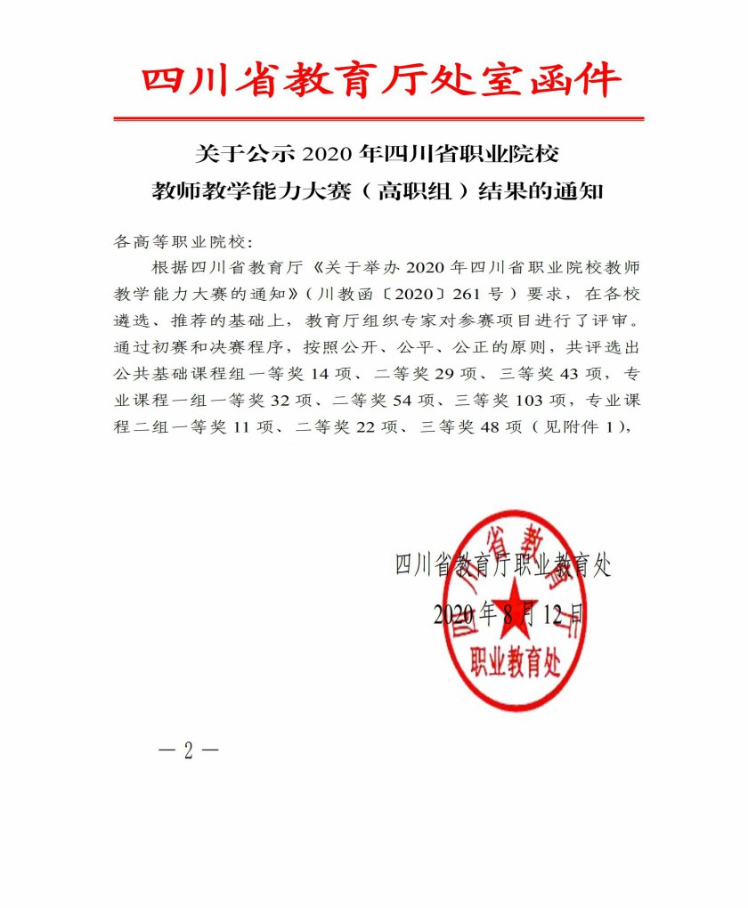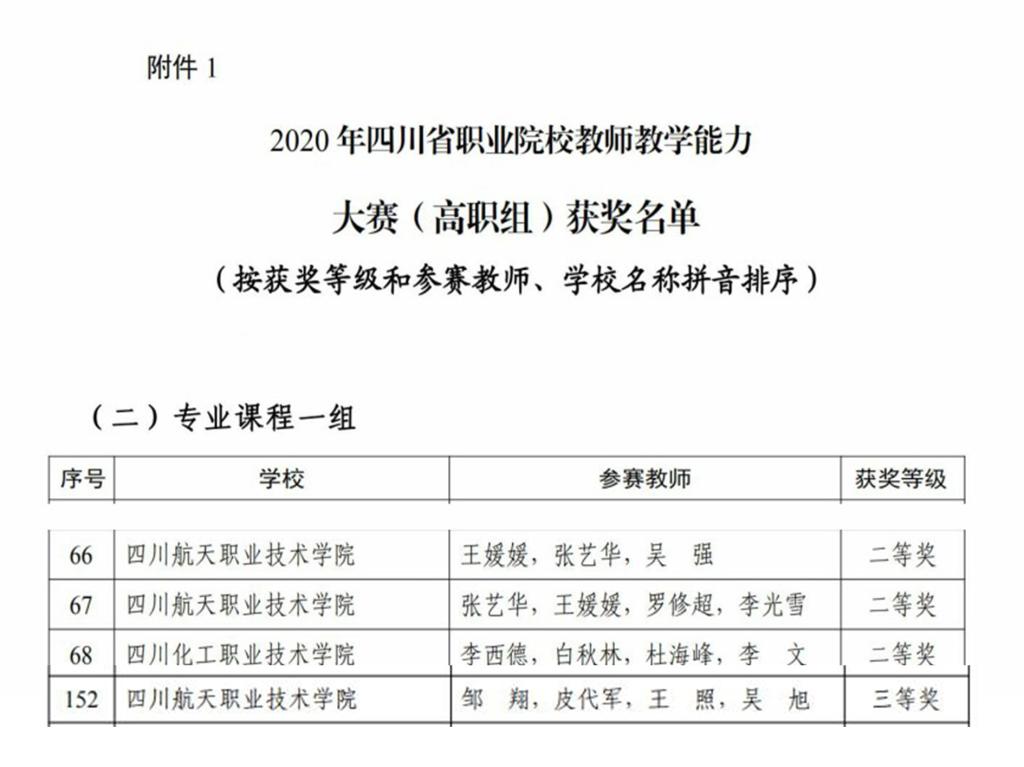由省教育厅主办的2020年四川省职业院校教师教学能力大赛在获奖名单公布,四川航天职业技术学院汽车工程系王媛媛、张艺华等教师团队在高职专业组中获两项二等和一项三等奖。